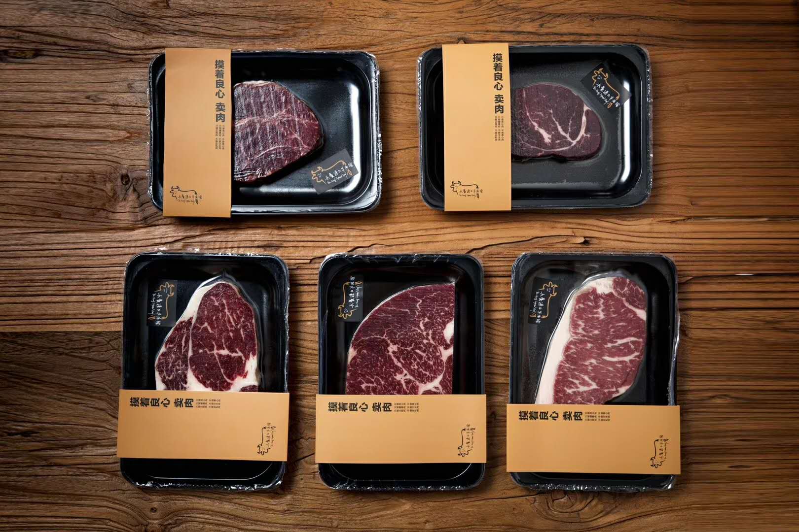 在鄭州一家賣(mài)場(chǎng)中,貼體包裝的牛肉產(chǎn)品疊加成扇形、花瓣形或一字排開(kāi),紅白花紋的牛肉在金色紙板的映襯下,就像一盤(pán)盤(pán)展示中的藝術(shù)菜品,陳列出了一道亮麗的風(fēng)景線(xiàn)。此外,金色紙板上印有品牌名稱(chēng),展示商品的同時(shí)也宣傳了品牌。