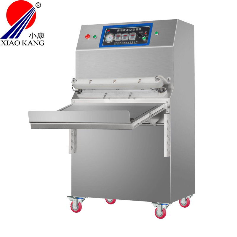 3、如果客戶做超大包裝,如5公斤、10公斤以上的,可以選擇用外抽式的。外抽式的袋子尺寸可以更換,缺點(diǎn)是真空度不高,產(chǎn)量低一些。
